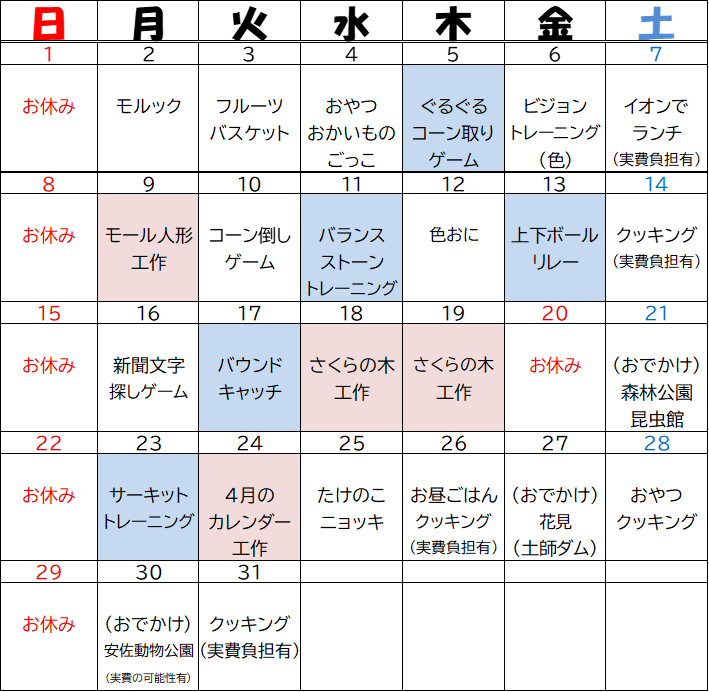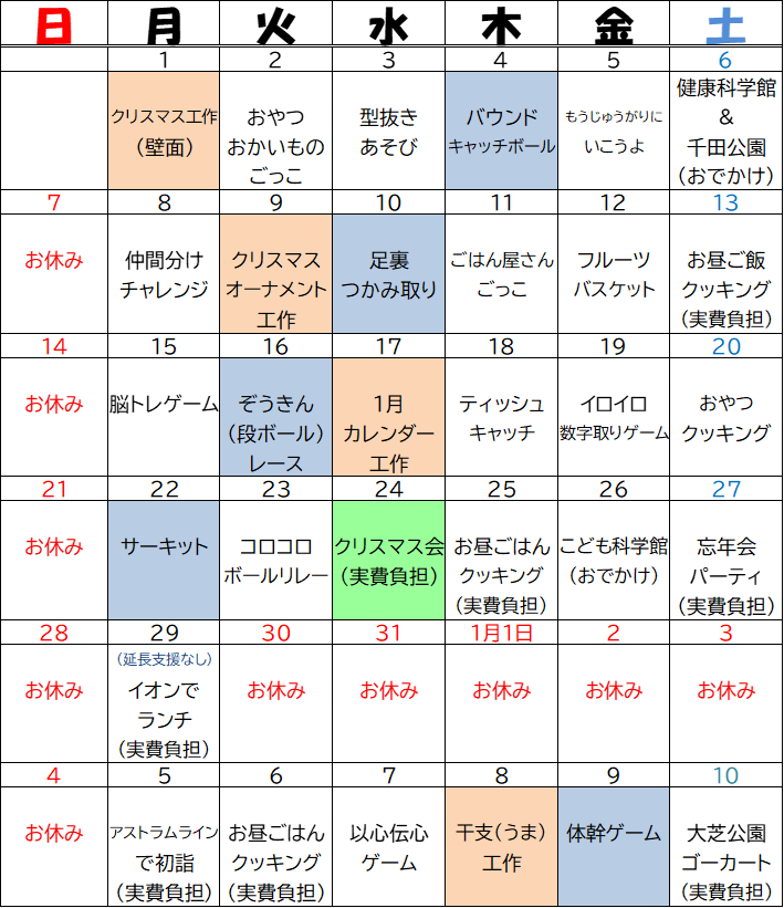 とまり木では、運動遊び・創作活動・クッキング・おでかけ等の様々な活動を取り入れています。(活動やおでかけは天候等の状況に応じて変更する場合があります。)